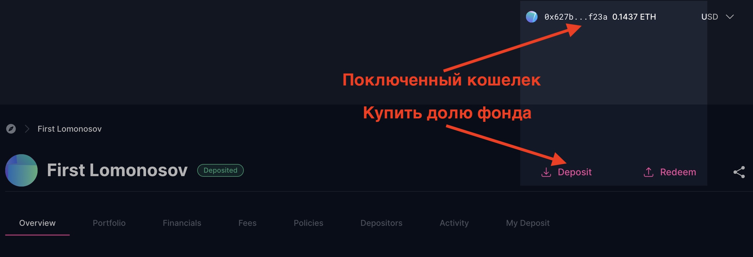 Прежде всего, заведите себе криптокошелек. Доли фонда номинированы в стейблкоине DAI, соответствующему доллару США. Для потенциальных клиентов фонд поможет обменять традиционные средства (например рубли, доллары США) на DAI.